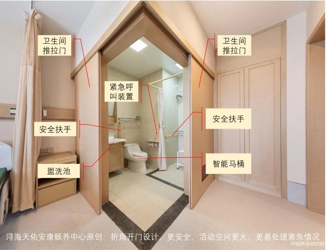 2、居室衛(wèi)生間滿足基本的安全和使用需求,符合以下全部條件: (1)設(shè)有緊急呼叫裝置或?yàn)槔夏耆伺鋫淇纱┐骶o急呼叫設(shè)備; (2)設(shè)有洗手池和座便器; (3)如廁區(qū)的必要位置設(shè)有扶手,扶手形式、位置合理,能夠正常使用。 3、居室衛(wèi)生間內(nèi)留有護(hù)理人員輔助操作的空間,符合以下全部條件,滿分: (1)盥洗池附近有護(hù)理人員為老年人進(jìn)行助潔操作的空間; (2)坐便器附近有護(hù)理人員為老年人進(jìn)行助廁操作的空間。